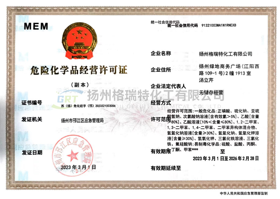 揚州格瑞特化工有限公司生產工廠坐落于江蘇省海安縣胡集工業園區和海安精細化工工業園??偣境闪⒂?999年,是集科、工、貿為一體的現代化生產型企業。專業致力于水處理劑、紡織印染助劑、化纖油劑等產品的科研、開發、生產和銷售。總公司占地面積40000m,建有現代化標準廠房,擁有先進的生產設備。年產各類水處理劑系列產品12000噸,紡織印染助劑5000噸,產品12個系列40多個品種??偣咀⒅丶夹g投入,設立產品研發中心和環保運營中心,聘請了多位專家為公司技術顧問,并和多個重點院校建立了長期技術合作開發關系,是南通大學、江南大學、南京工業大學產學研基地。